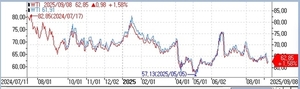 국제유가가 8일 러시아산 원유에 대한 추가 제재 우려에 상승했다.연합인포맥스 에너지선물 종합(화면번호 6901)에 따르면 뉴욕상업거래소에서 10월 인도분 서부텍사스산원유(WTI)는 오후 5시 32분 현재 전장보다 1.58% 오른 배럴당 62.85달러에 거래됐다.러시아가 전일 우크라이나 수도 키이우 도심에 있는 정부 청사를 드론으로 공격하면서 러시아 원유에 대한 추가 제재 우려가 유가에 상승 압력을 가한 것으로 풀이된다.러시아가 우크라이나 정부 청사를 공격한 것은 이번이 처음이다.도널드 트럼프 미국 대통령은 이날 러시아와 우크라이나