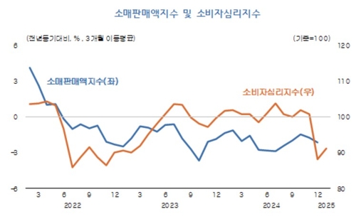 온라인카지노 벌금 벳무브는 "1월 소비자심리지수는 전월(88.2)에 이어 기준치를 크게 하회하는 91.2에 그치며 소비심리 위축을 반영했다"며 "고금리 기조가 유지되는 가운데 정국 불안에 따른 가계 심리 위축으로 소비 부진이 지속되는 모습"이라고 분석했다.