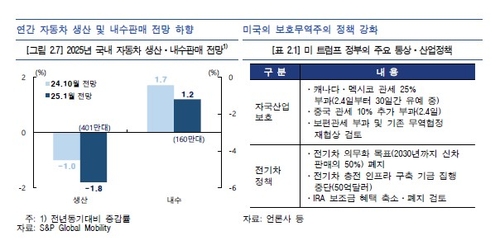 이차전지는 성장세 둔화가 길어질 우려가 제기됐다. 한은은 "미국과 유럽에서 전기차 시장 성장을 뒷받침해온 정책들이 폐지 또는 완화할 가능성이 커졌다"며 "예상보다 부진이 장기화될 수 있다"고 우려했다.