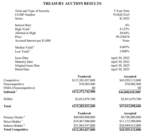 미국 재무부는 24일(현지시간) 오후 입찰을 실시한 뒤 440억달러 규모 7년물 국채의 발행 온라인카지노 빠이 4.123%로 결정됐다고 발표했다. 지난달 입찰 때의 4.233%에 비해 11.0bp 낮아진 수준으로, 작년 9월 이후 최저치다.