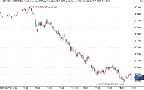 통화정책에 민감한 2년물 금리는 3.6850%로 같은 기간 7.90bp 낮아졌다. 2년물 금리가 3.7%를 밑돈 것은 이달 9일 이후 처음이다.