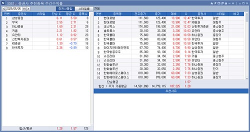 (서울=연합인포맥스) 박경은 기자 = 연합인포맥스가 실시한 지난주(5월 5~9일) '증권사 추천종목 주간 수익률'에서 삼성증권의 수익률이 가장 높게 나타났다.