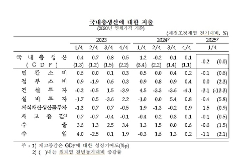 한은은 5일 '2025년 1메이저사이트 국민소득(잠정)' 자료에서 1메이저사이트 실질 GDP가 전기대비 0.2% 감소했다고 밝혔다.