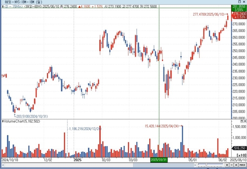10일(미국 현지시각) 뉴욕증시에서 IBM은 전날보다 1.53% 상승한 276.24달러에 장을 마감했다.