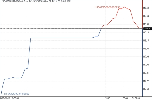 10년 국채선물은 13틱 하락한 118.30을 기록했다. 외국인은 20계약 팔았고, 금융투자는 12계약 사들였다.