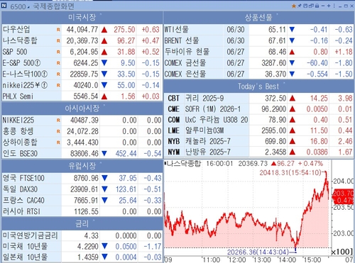 △뉴욕증시는 3거래일 연속 상승 마감. 오라클이 300억달러 규모 수주 계약을 따내며 급등했고, AI 관련주인 메타와 엔비디아도 사상 최고가 경신. 주요 기술주 주도로 S&P500지수와 나스닥지수는 또다시 사상 최고치를 갈아치움. 트럼프 대통령의 상호관세 유예 연장 불가 방침에도 불구하고, 캐나다가 디지털세 철회를 발표하며 무역갈등 완화 기대가 투자심리를 지지.
