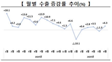 (서울=연합인포맥스) 유수진 기자 = 6월 수출이 미국 트럼프 행정부의 '관세 폭탄' 등의 여파에도 다시 증가세로 돌아섰다. 역대 6월 중 1위 실적이다.