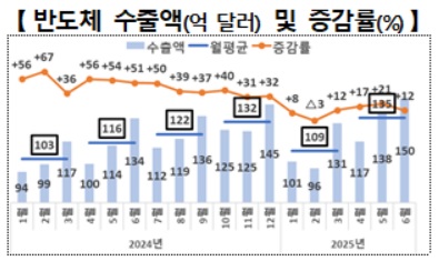 '효자 품목'인 반도체 수출이 역대 최대를 기록하고 자동차 수출도 6월 기준 최대치를 찍으며 전체 수출을 끌어올린 결과다.