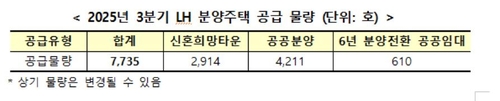 분양주택 총 7천735호 가운데 신혼희망타운이 2천914호, 공공분양이 4천211호이며, 6년 후 분양전환이 가능한 공공임대는 610호다.