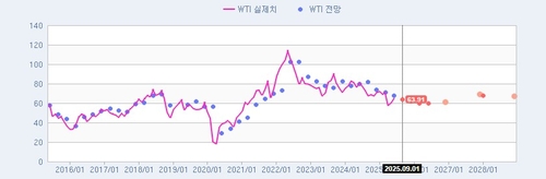 연합인포맥스가 집계한 올해 3분기 브렌트유 전망치는 배럴당 67.03달러였다. 4분기에는 65달러까지 하락할 것으로 전망됐다. 모두 12개 기관이 참여했다.