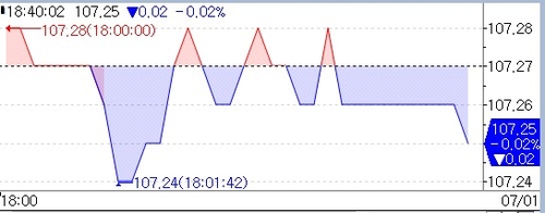 서울채권시장에 따르면 3년 국채선물은 오후 7시 12분 현재 주간 거래 종가대비 2틱 하락한 107.25을 나타냈다.
