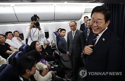 이 온라인카지노 조작 벳위즈은 캘거리 공항 이륙 후 기자단을 찾아 간단한 질의 응답 시간을 가졌다. 2025.6.19 xyz@yna.co.kr