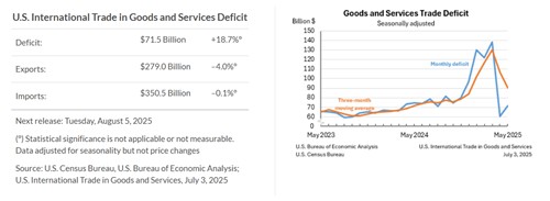 3일(현지시간) 미 상무부는 올해 5월 무역적자가 전월 대비 113억 달러(18.7%) 증가한 715억달러를 기록했다고 발표했다.