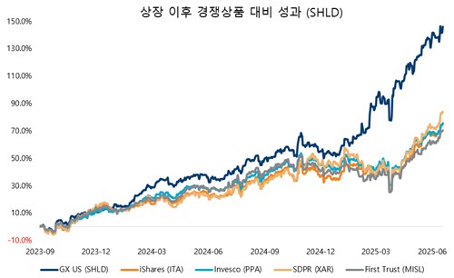 SHLD는 미래에셋자산운용의 해외 온라인카지노 추천 1 운용 자회사인 글로벌X가 2023년 미국에 상장시킨 글로벌 방산 온라인카지노 추천 1다. 이 상품은 차별화된 종목 구성으로 경쟁 상품 대비 2배 가량 높은 수익률을 달성하는 데 성공했다.