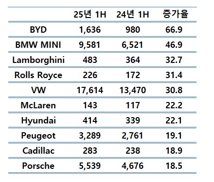 실제 일본 수입차 시장에서도 친환경차 브랜드들의 두각이 뚜렷하다. BYD의 상반기 일본 판매량은 1천636대로 전년 동기 대비 66.9% 증가했다. BMW MINI 역시 친환경차 비중 확대에 힘입어 9천581대를 판매하며 전년보다 46.9% 증가했다.