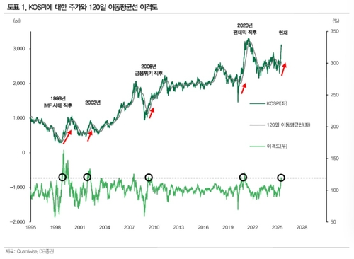 그는 "향후 코스피 움직임이 2002년과 유사하거나 그보다 빠른 반전이 나타날 여지가 존재한다"며 "지금 코스피 상승세를 즐기지만 2002년 사례를 본받아 방망이를 짧게 잡고 대응해야 한다"고 말했다.
