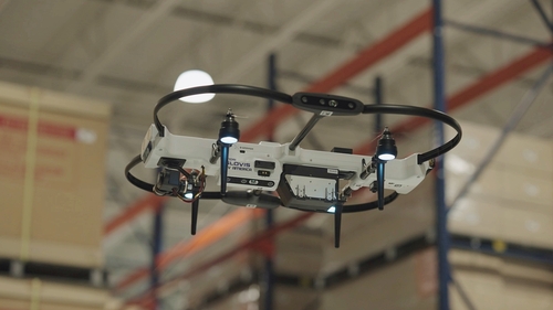 드론은 이동 시 거리와 속도를 추정하는 컴퓨터비전기술(Visual Inertial Odometry·VIO)과 관성측정장치(Inertial Measurement Unit·IMU)를 이용해 물류센터 내에서 자율 비행이 가능하도록 설계됐다. 또 보관 중인 물품의 위치를 확보해 재고를 파악할 수 있도록 어안(Fisheye) 카메라와 스테레오 카메라, 거리센서, 가속도·각속도 센서 등을 갖췄다.