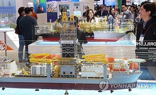 18일까지 열리는 이번 행사에는 국내 대형 조선사 3곳을 비롯해 주요 기자재와 설비업체 등 16개국 170개 사 참가해 다양한 친환경 에너지 해양플랜트 분야 기술을 선보인다. 2024.10.16 sbkang@yna.co.kr