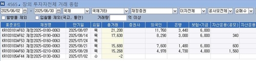 연합인포맥스 투자 주체별 거래 종합(화면번호 4565)에 따르면 지난달 외국인은 장외 채권시장에서 재정증권을 3조2천600억여원 사들이며 전체 순매수의 약 47%를 차지했다.