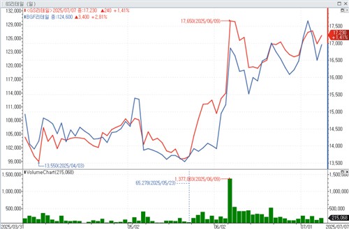8일 연합인포맥스 종목 시세(화면번호 3111)에 따르면 BGF리테일은 지난 7일 전일 대비 2.81% 오른 12만4천600원, GS리테일은 1.41% 상승한 1만7천230원에 거래를 마쳤다.