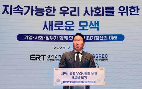 최 회장은 8일 중구 대한상의 국제회의장에서 개최된 '기업, 사회, 정부가 함께 만드는 기업가정신의 미래' 토론회 인사말에서 "기업은 경제 활동과 사회 활동을 동시에 하지만 두 가지가 조화되지는 않고 있다"며 "돈만 벌면 된다는 인식이 강해 사회 가치를 만들 수 있는 효과 등은 등한시되고 있다"고 지적했다.