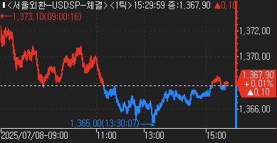 장중 고점은 1,373.10원, 저점은 1,365.00원으로 장중 변동 폭은 8.10원을 기록했다.