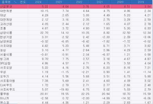 식품업계 영업이익률은 다른 업종보다 높지 않은 편이다. 지난해 개별·별도기준 유가증권시장에서 제조업 영업이익률은 평균 8.83%다.