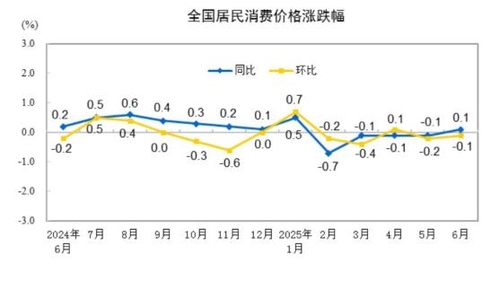 9일 중국 국가통계국은 6월 CPI가 전년 동월 대비 0.1% 상승했다고 발표했다.