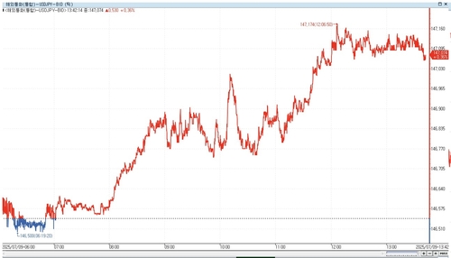 달러-엔 환율은 내내 우상향하며 꾸준히 오름폭을 키웠다. 오전 장 후반에는 약 2주 만에 처음으로 장중 147엔 선을 상향 돌파했다.