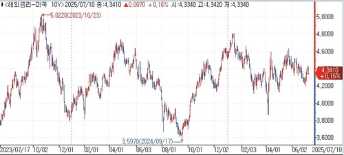 그는 "지금 많은 사람이 이 이슈에 이야기하고 있지만, 지금의 위험이 가격에 반영된 것이 10년 만기 국채 금리"라며 "금리는 지난 2022년 12월 이후로는 크게 움직이지 않고 있다"고 지적했다.