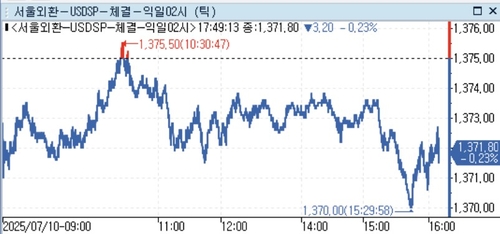 (서울=연합인포맥스) 정선영 기자 = 달러-원 환율이 1,370원대에서의 하단 지지 흐름을 이어갔다.