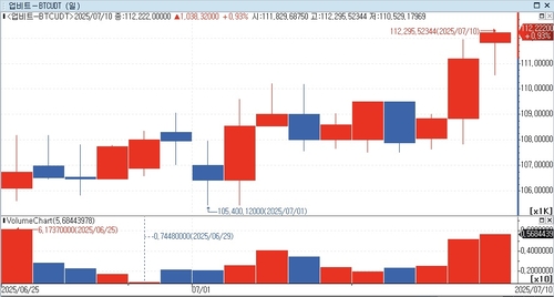 비트코인은 장중 11만2천295달러까지 상승했다. 이틀 연속 신기록을 새로 쓰고 있다. 이날 고점을 기준으로 비트코인의 올해 상승률은 18% 수준이다.