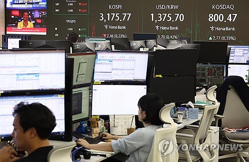이날 코스피 지수는 전 거래일보다 7.46포인트(0.23%) 내린 3175.77로, 코스닥지수는 전장보다 2.77포인트(0.35%) 오른 800.47로 마감했다. 2025.7.11 ksm7976@yna.co.kr