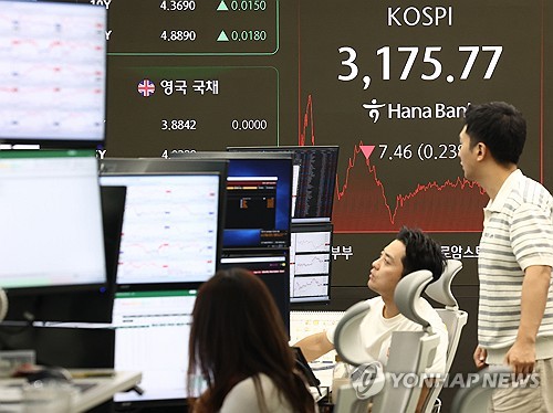 이날 코스피 지수는 전 거래일보다 7.46포인트(0.23%) 내린 3175.77로 마감했다. 2025.7.11 ksm7976@yna.co.kr