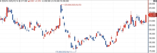 현대차 주가는 전일 21만7천원에서 마감했다. 지난해 말 종가인 21만2천원보다 약 0.2% 높은 수준이다. 이 기간 코스피 지수는 33%가량 급등했다. 증권가 목표주가는 평균 27만5천원에 형성돼 있다.