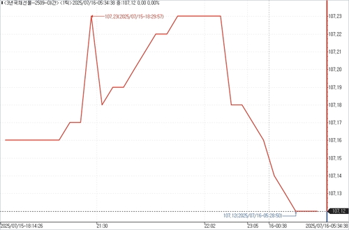 16일 서울채권시장에 따르면 3년 국채선물은 야간 거래에서 전일 주간 거래 종가 대비 6틱 하락한 107.12에 마감됐다. 외국인은 2계약 순매도했고, 개인은 2계약 순매수했다.