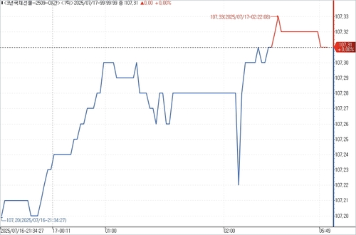 17일 서울채권시장에 따르면 3년 국채선물은 야간 거래에서 전일 주간 거래 종가 대비 12틱 상승한 107.31에 마감됐다. 외국인은 319계약 순매도했고, 금융투자는 426계약 순매수했다.