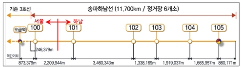 (서울=연합인포맥스) 한종화 기자 = 국토교통부 대도시권광역교통위원회가 서울지하철 3호선을 연장하는 '송파하남선 광역철도'의 기본계획을 오는 22일 승인할 계획이라고 21일 밝혔다.