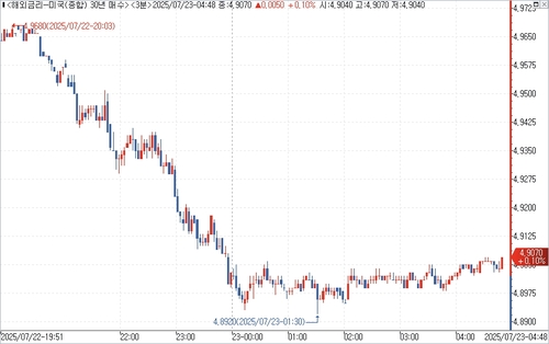 만기가 가장 긴 30년물 국채금리는 4.9030%로 3.40bp 내렸다.