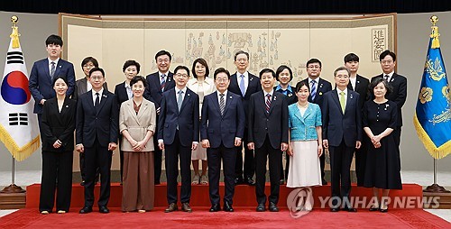 이날 수여식에서는 구윤철 부총리 겸 기획재정부 장관을 비롯해 배경훈 과학기술정보통신부 장관, 조현 외교부 장관, 정성호 법무부 장관, 윤호중 행정안전부 장관, 정은경 보건복지부 장관, 김성환 환경부 장관, 김영훈 고용노동부 장관이 임명장을 받았다.