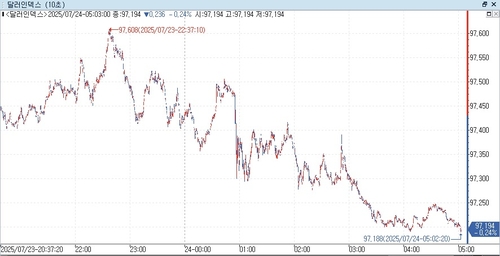 미국이 유럽연합(EU)에 15%의 관세를 부과하는 방향으로 합의가 근접했다는 소식에 주요 6개 통화에 대한 온라인카지노 합법 사이트 가치를 반영하는 온라인카지노 합법 사이트인덱스(DXY)는 97대 초반으로 굴러떨어졌다. 위험자산 선호심리와 유로 강세가 온라인카지노 합법 사이트를 압박했다.