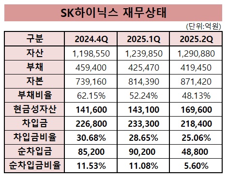 (서울=연합인포맥스) 유수진 기자 = SK하이닉스가 2분기에 역대 최고 실적을 기록하며 재무 상태도 크게 개선된 것으로 나타났다.