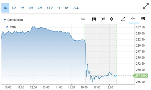 회사 주가는 시간 외 거래에서 5% 넘게 내린 주당 267.6달러에 거래됐다.