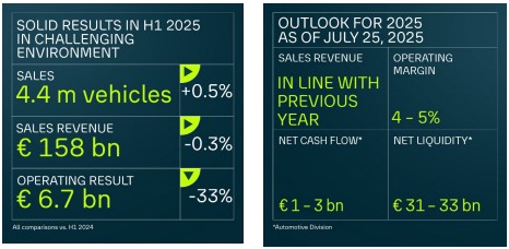 아르노 안틀리츠 폭스바겐 최고재무책임자(CFO)는 "상반기 영업이익은 전년 대비 3분의 1로 감소했는데, 미국 수입 관세 인상과 구조조정 조치 등이 부정적인 영향을 미쳤다"고 설명했다.
