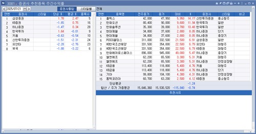 추천종목의 누적 등락률은 인포맥스 화면 '증권사 추천종목 현황(화면번호 3080)'을 통해 실시간으로 확인할 수 있다.