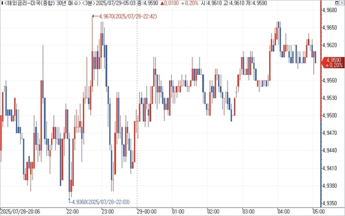 만기가 가장 긴 30년물 국채온라인 카지노 주소는 4.9650%로 3.70bp 상승했다.