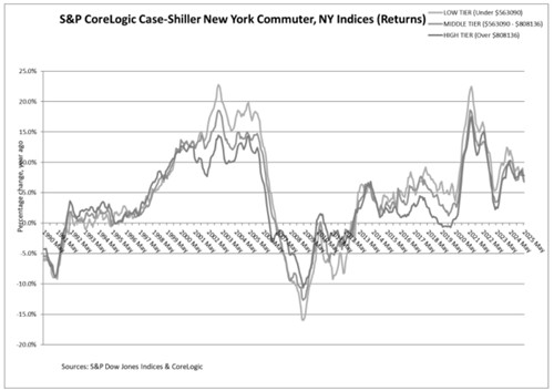 상승폭이 가장 큰 도시는 뉴욕으로 7.4%에 달했다. 시카고(6.1%)와 디트로이트(4.9%)가 그 뒤를 이었다. 반면, 탬파는 2.4% 하락하며 유일하게 마이너스(-)를 기록했다.