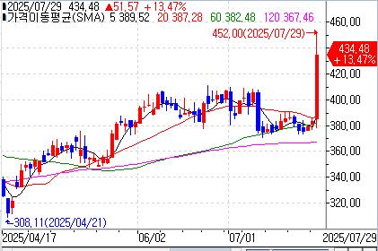 29일(미국 현지시각) 사이버아크 소프트웨어는 전날보다 51.57달러(13.47%) 오른 434.48달러에 거래를 마감해 사상 최고치를 기록했다.