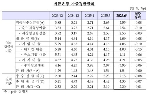 순수저축성예금, 시장형금융상품은 각각 0.10%p, 0.03%p 내렸다.