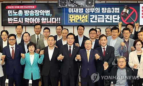 (서울=연합인포맥스) 온다예 기자 = 여당이 강행 처리를 예고한 '방송3법'(방송법·방송문화진흥회법·한국교육방송공사법 개정안)을 두고 "공영방송은 물론 민영방송까지 장악하려는 위헌적인 시도"라는 비판이 나왔다.